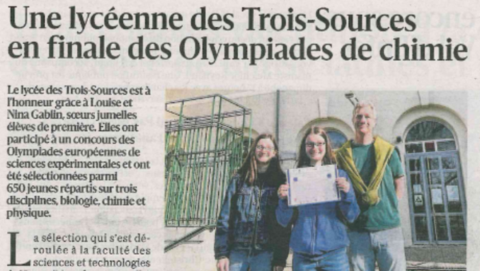 Par D A, publié le mardi 3 mars 2026 15:41 - Mis à jour le mardi 3 mars 2026 15:43Louise Gablin représentera la France aux olympiades de sciences expérimentales du 2 au 9 mai à Lund (Suède). -